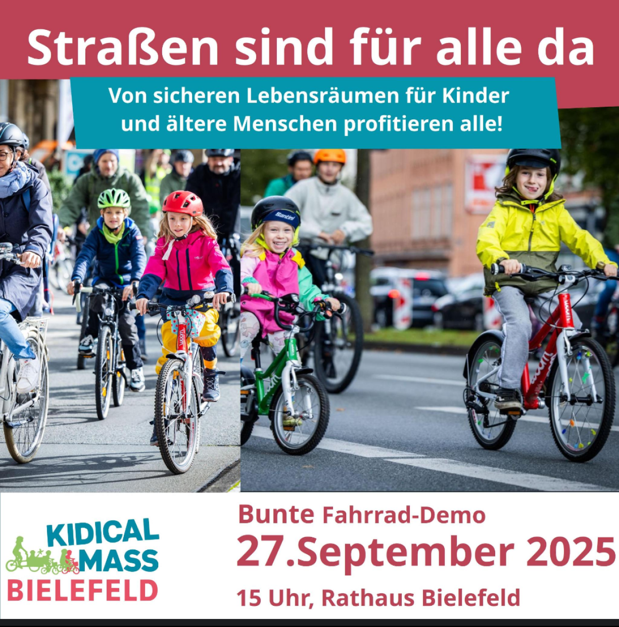 Fahrräder mit Wimpeln schmücken und mit Musik und dem Rad durch die Stadt und dem OWD-Tunnel fahren. Geschützt durch die freundliche Polizei.