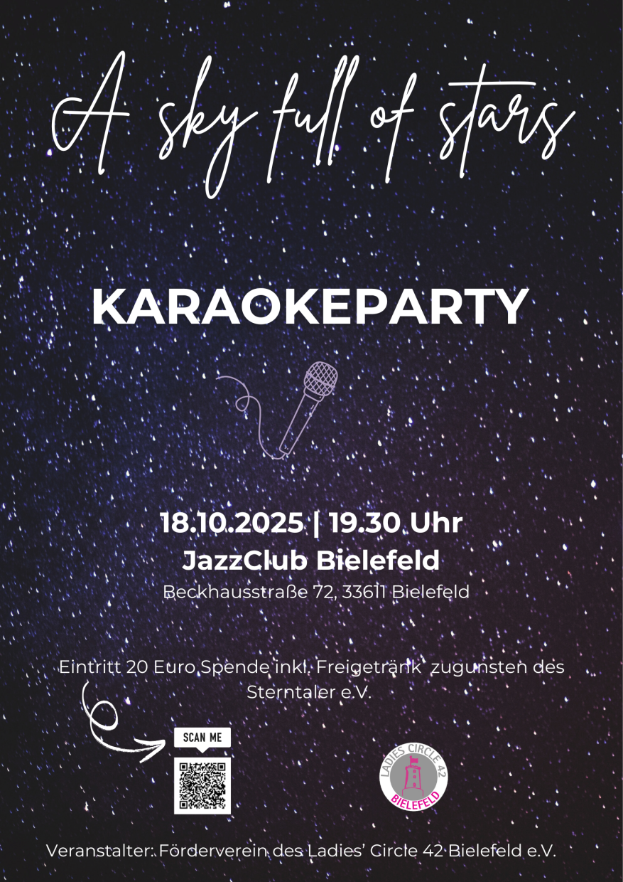 Das Beste: 100 % der Erlöse gehen direkt an das Projekt Sterntaler. Ein Ticket kostet 20 € und enthält ein Freigetränk nach Wahl. Dieses Herzensprojekt unterstützt Kinder und Jugendliche, die einen geliebten Menschen verloren haben, mit liebevoller Trauerbegleitung und gibt ihnen Halt in einer schweren Zeit.
