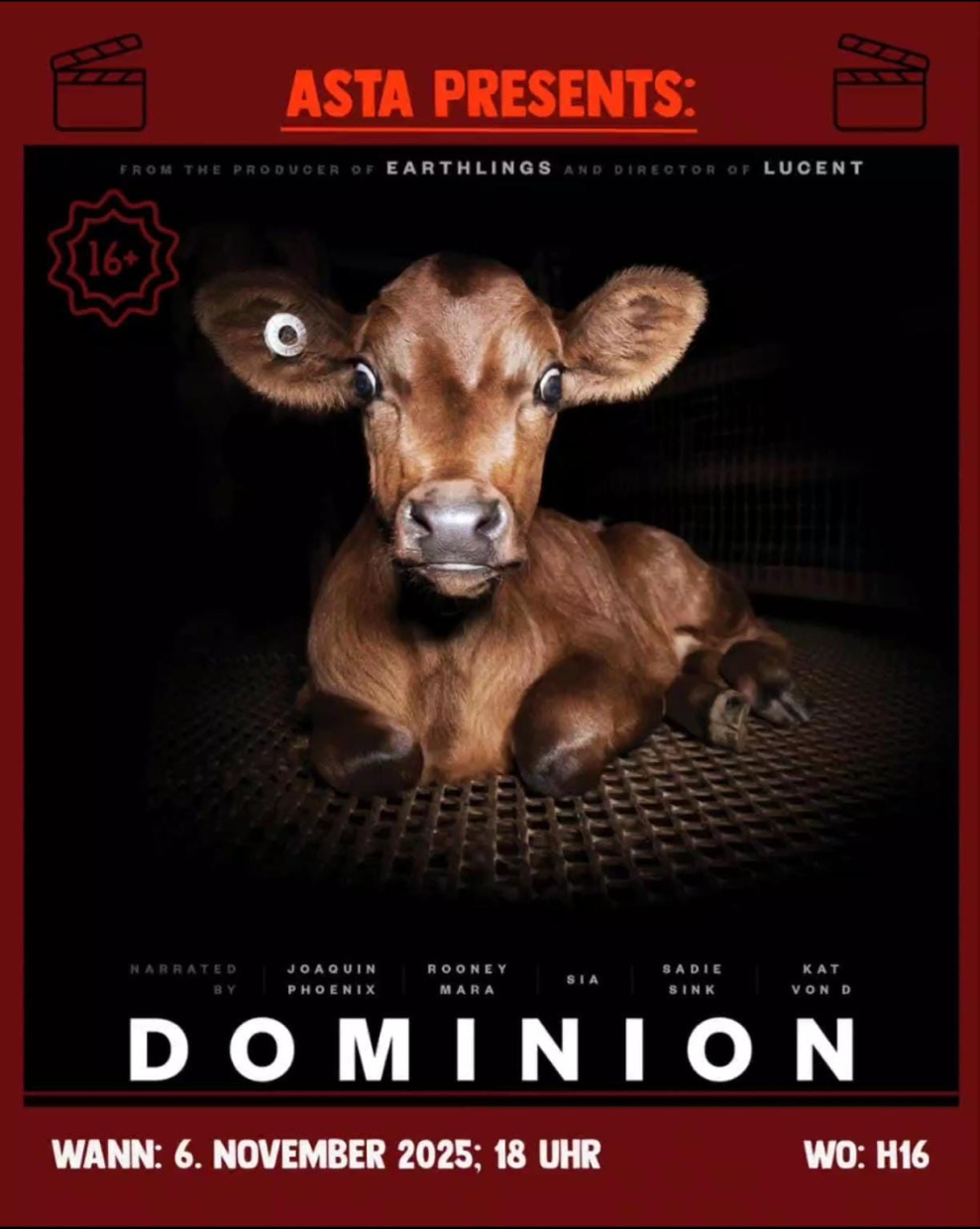 Der Einlass in H16 beginnt ab 18:00 Uhr, der Film startet dann um ca. 18:15 am 6.11.2025.